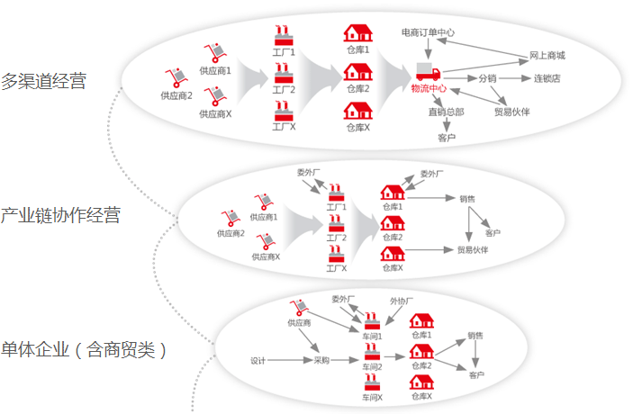 支持各类企业全生命周期的经营与管理,包括单体(含多工厂)产业链协作经营,多渠道经营的工业及商贸企业。